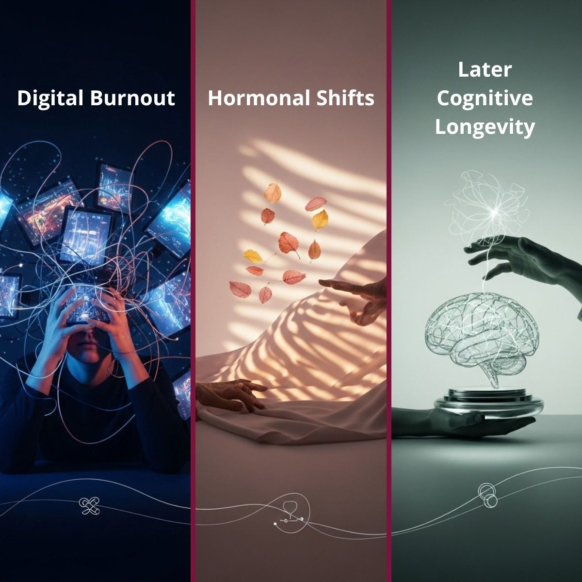 Modern life presents complex challenges that evolve with you: the burnout of constant connectivity in your 30s, the hormonal shifts of your 40s and 50s, the cognitive longevity priorities of later decades.